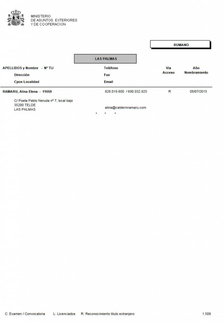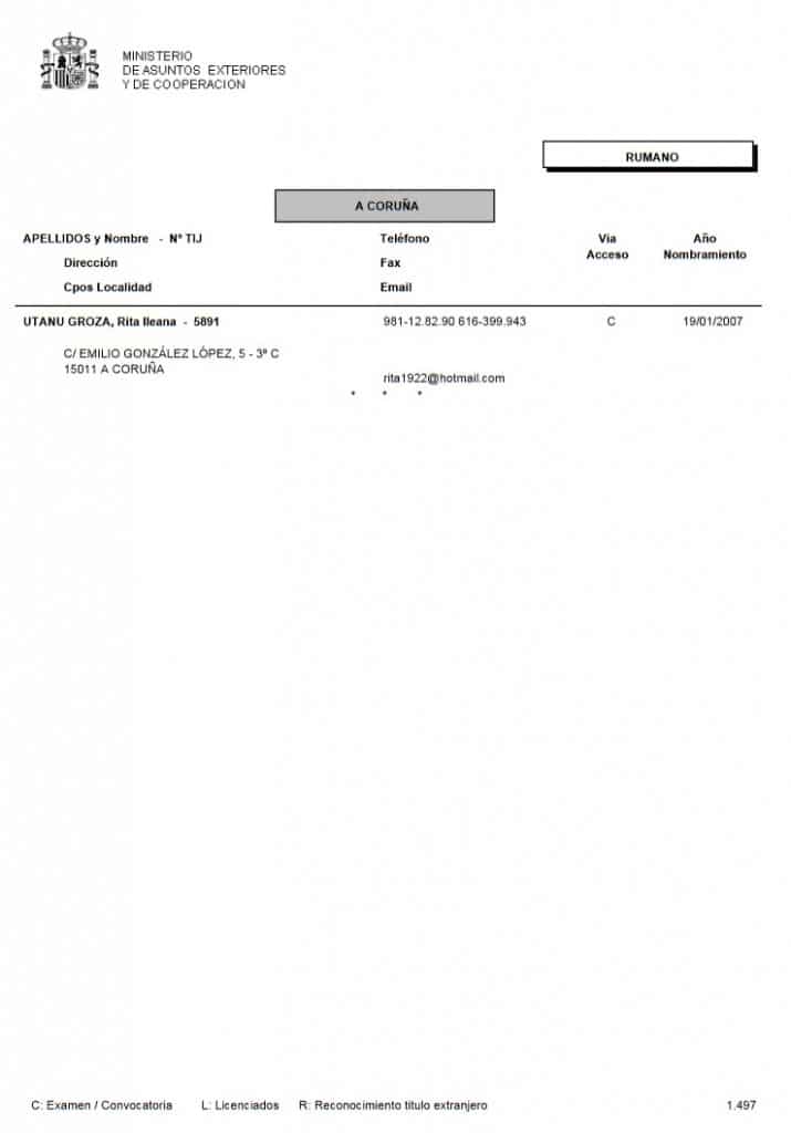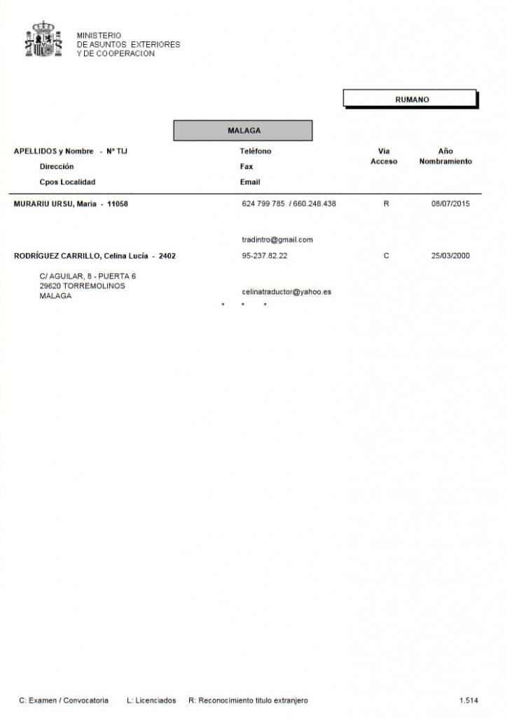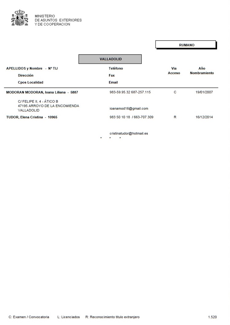 Astfel, litera C este trecută în dreptul celor care au susținute examene organizate de acest minister, L pentru cei care au urmat o formă de învățământ ce le dă dreptul să facă traduceri și interpretări, iar la litera R apar toți acei cărora le-a fost recunoscută diploma obținută într-o altă țară.
